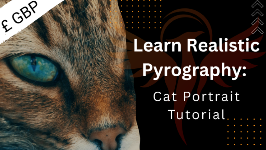 Learn Realistic Pyrography: Cat Portrait Tutorial with added Colour Pencils GBP £27